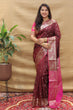 Ailurophile Maroon Soft Banarasi Silk Saree With Girlish Blouse Piece