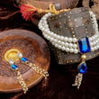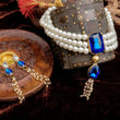 Blue Dimond And gold-plated pearl Necklace Alloy Gold-plated Jewel Set