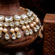 Heavy Dimond and Gold Plated Pearl Necklace Jewel Set (White, Rose Gold)
