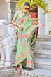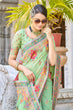 Arresting Pista Pashmina saree With Gleaming Blouse Piece