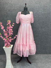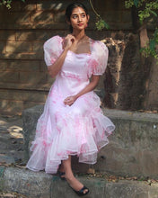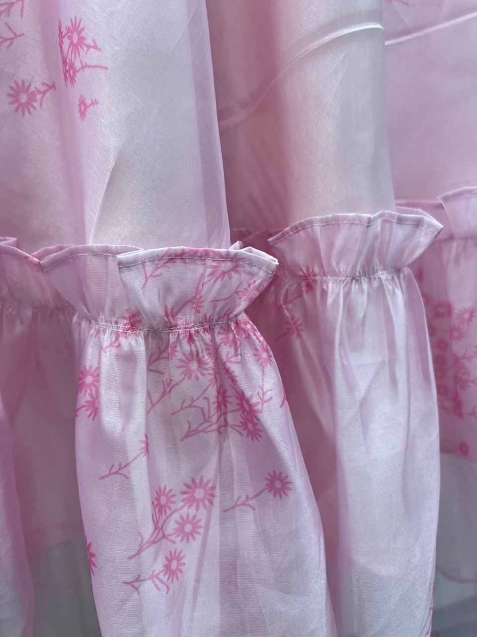 Layla Pure Silk Organza One-Piece Tunic, crafted from heavy premium quality pure Laila silk organza fabric for a luxurious and sophisticated look. Featuring a ruffle-pleated full-flair bottom and balloon sleeves, this tunic exudes grace and style. Designed for comfort, it comes with a pure micro cotton full inner lining, ensuring a soft and breathable fit.