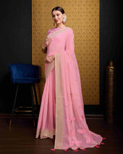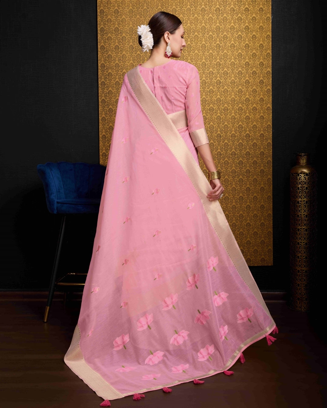 Baby Pink Radiant Floral Printed Saree with Zari Border