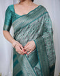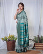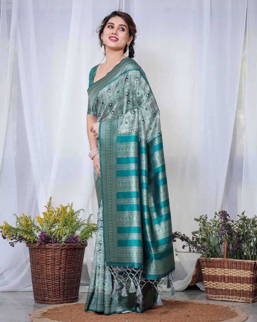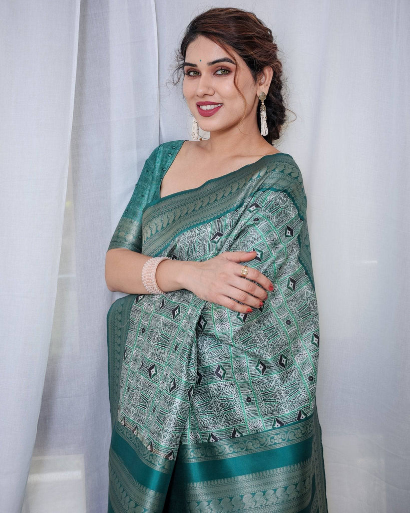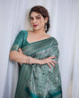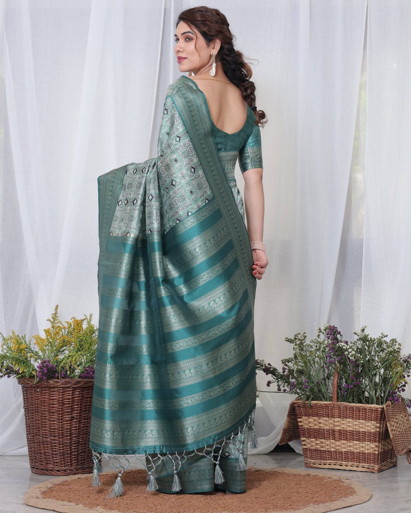 Banarasi Digitally Printed Green Silk Saree with Zari Weave and Elegant Tassels