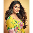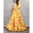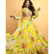 The combination of these elements makes it a unique and stylish piece. The yellow color and floral print give the outfit a bright and cheerful look, while the faux georgette fabric gives it a flowy and lightweight feel. This outfit can be worn on various occasions like parties, weddings and other events.