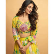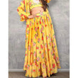 A Beautiful Floral Printed Yellow Faux Georgette Jacket Lehenga Choli is a fashionable Indian outfit that is made up of three main pieces: