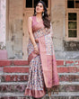 Elevate your ethnic collection with this pure Banarasi digitally printed silk saree, a masterpiece that seamlessly blends traditional artistry with modern sophistication.