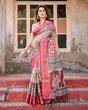 Beige and Red Tussar Silk Saree with Traditional Motifs and Ornamental Zari Border