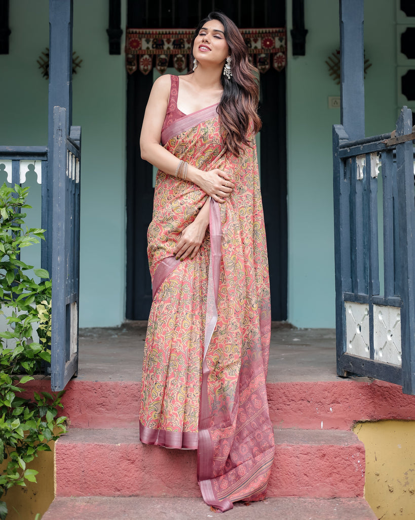 Cotton linen is celebrated for its breathability, durability, and natural texture, making it an ideal fabric for sarees that are comfortable to wear throughout the day. Its blend ensures that you enjoy the softness of cotton and the sturdy feel of linen, providing a perfect balance for any season.