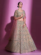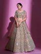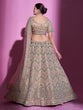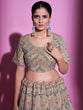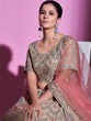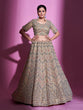 Beige Silk Blend Embroidered Semi Stitched Lehenga With Unstitched Blouse