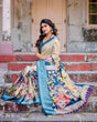 Elevate your ethnic collection with this pure Tussar digitally printed silk saree, a masterpiece that seamlessly blends traditional artistry with modern sophistication.