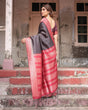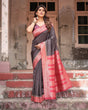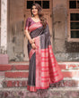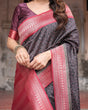Black Banarasi Silk Saree with Intricate Pink Zari Border & Traditional Motifs