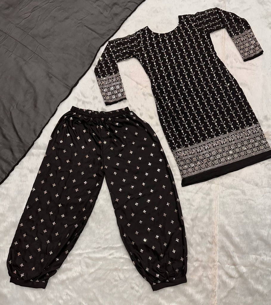 Black Designer Faux Blooming Suit Set with 5mm Sequins Embroidery & Georgette Dupatta