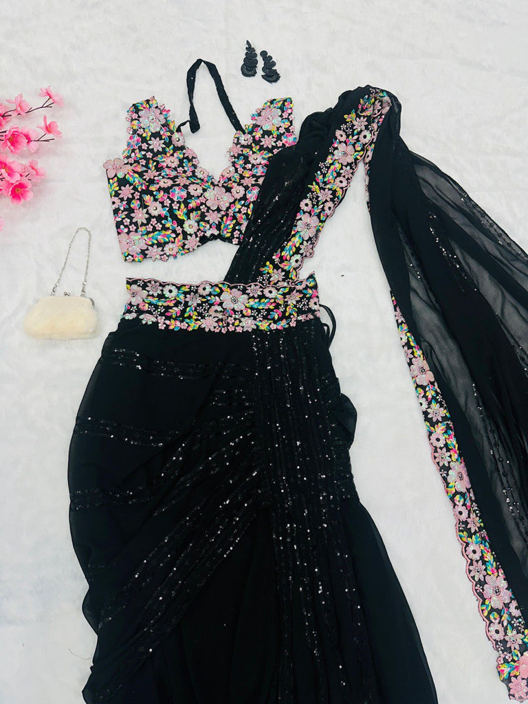 Black Discover Elegance with Our Ready-to-Wear Lehenga Style Saree