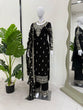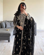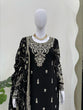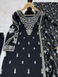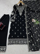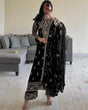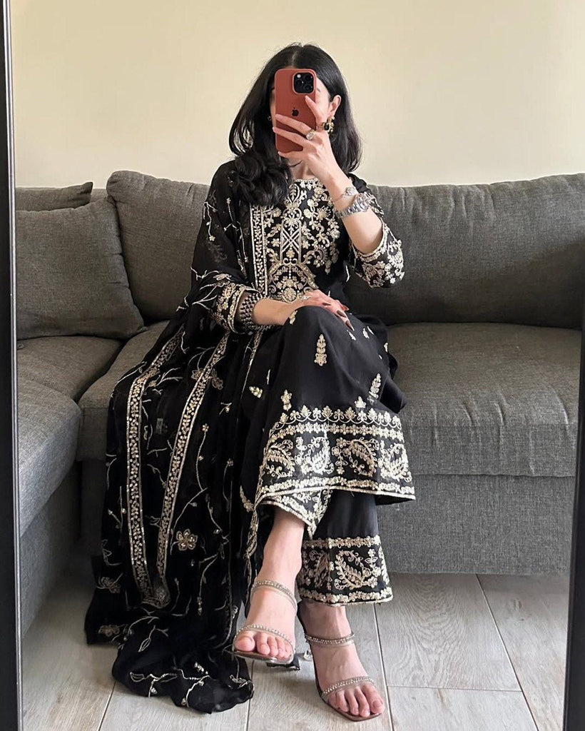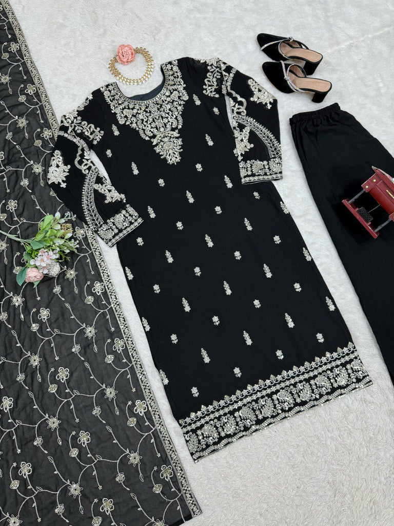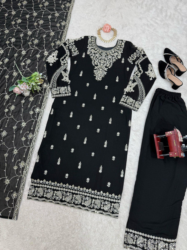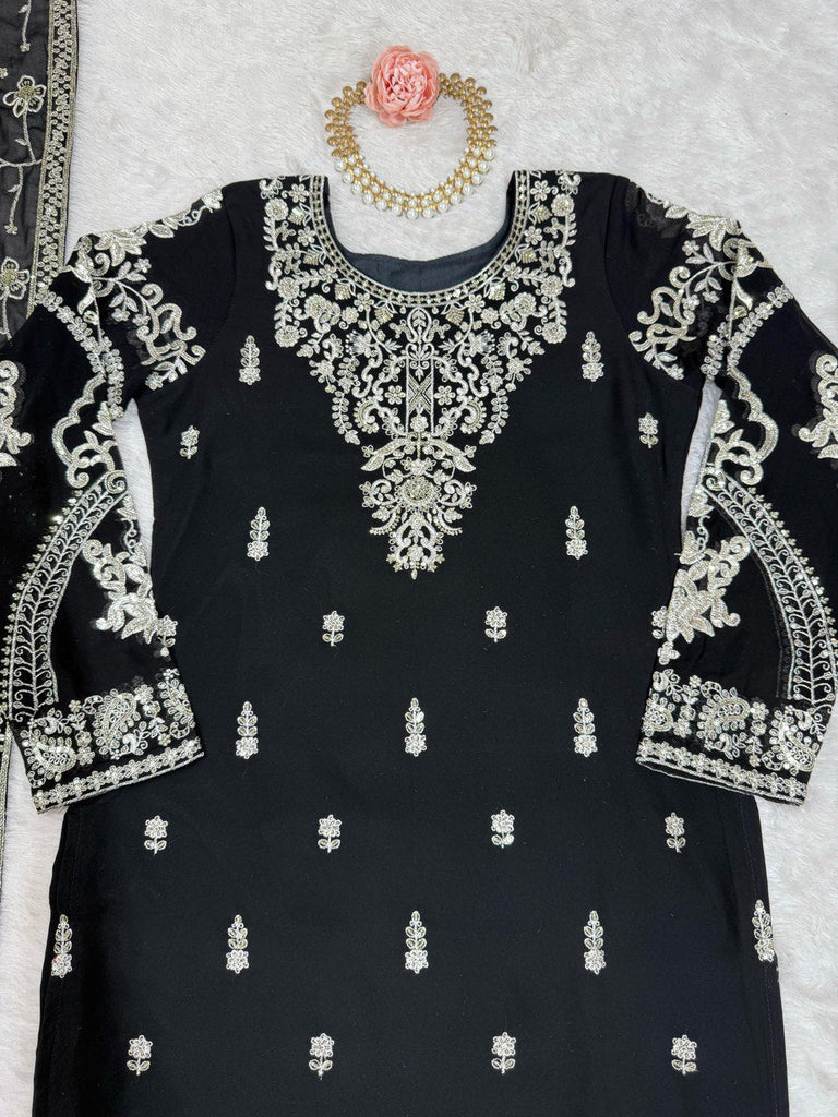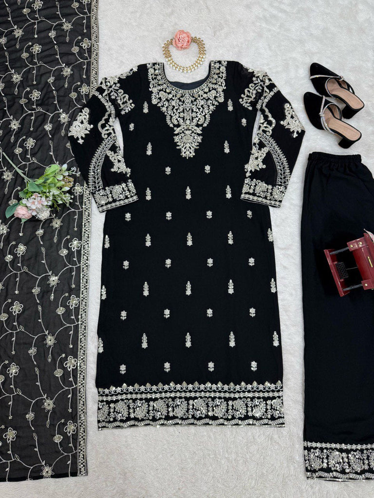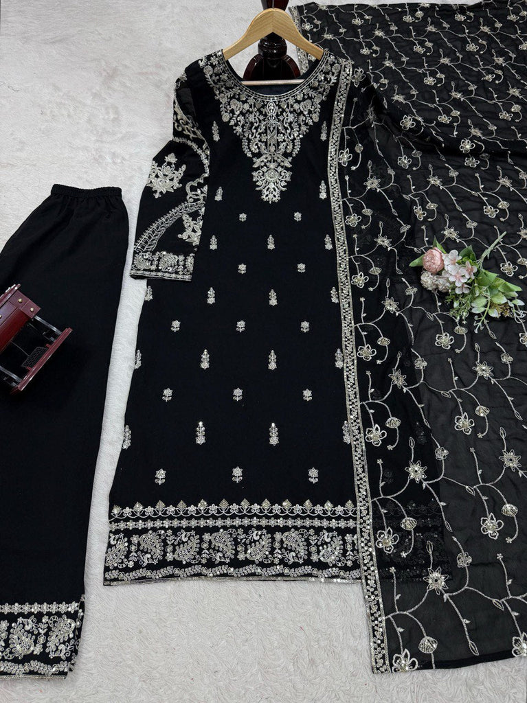 Black Elegant Faux Georgette Embroidered 3-Piece Suit Set with Lace Border Dupatta