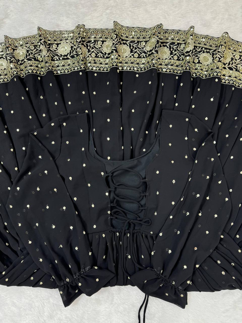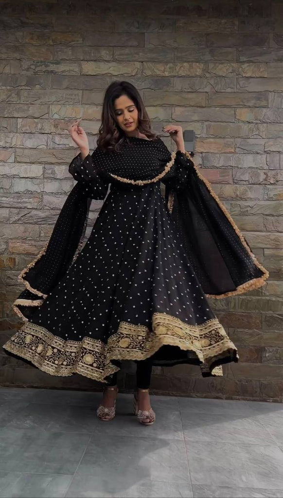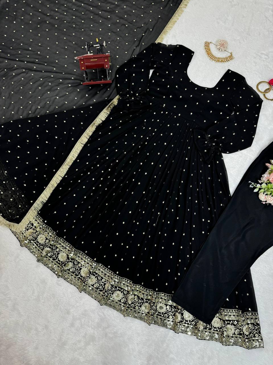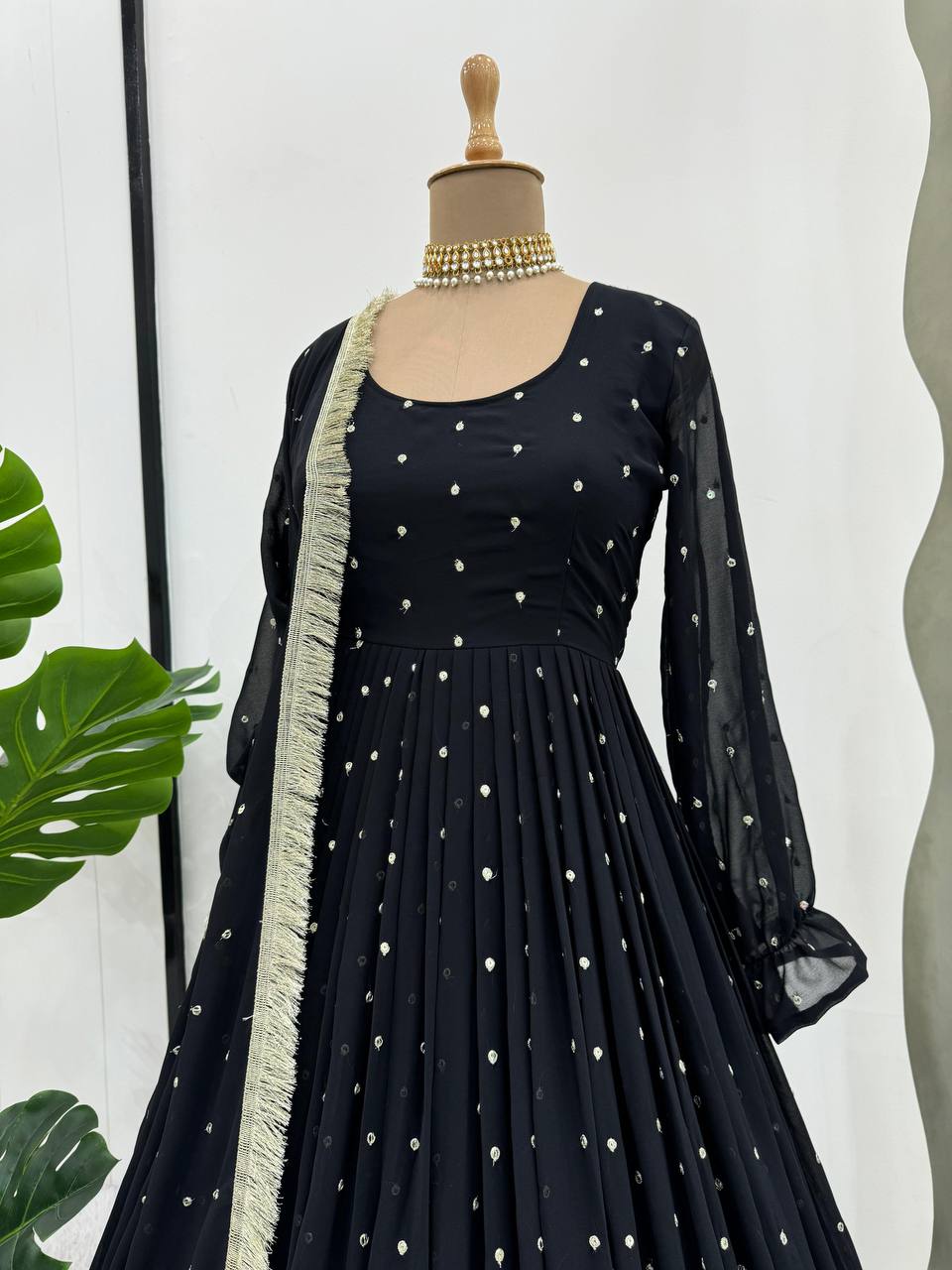 Black Elegant Faux Georgette Long Gown Set with Dupatta