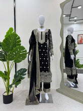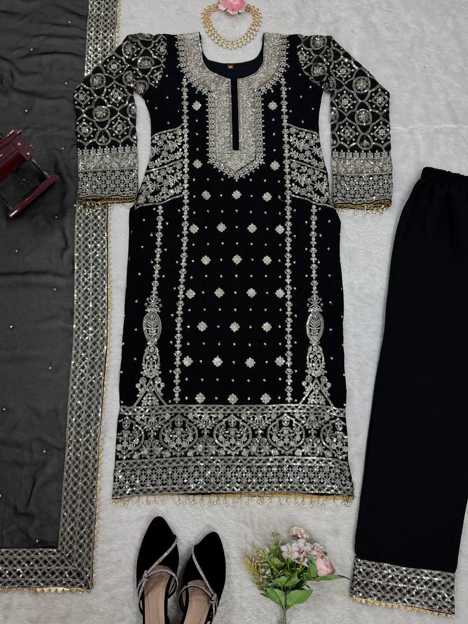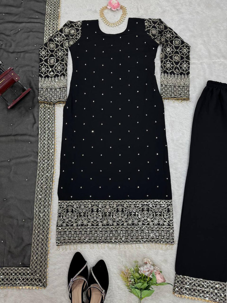 Black Elegant Faux Georgette Thread & Sequin Embroidered Suit Set