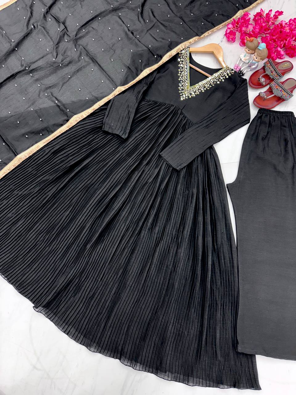 Black Elegant Party Wear Alia Cut Anarkali Gown Set with Dupatta & Bottom