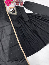 Make a stunning statement at your next event with this Black Party Wear Alia Cut Anarkali Gown Set, featuring a luxurious blend of premium fabrics and exquisite craftsmanship.