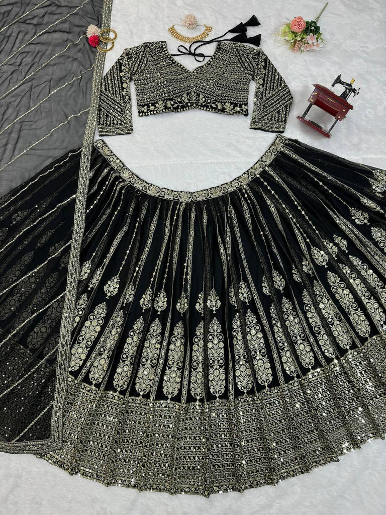 Black Elegant Spark Semi-Stitched Lehenga Choli Set – Faux Georgette with Thread & Sequin Work