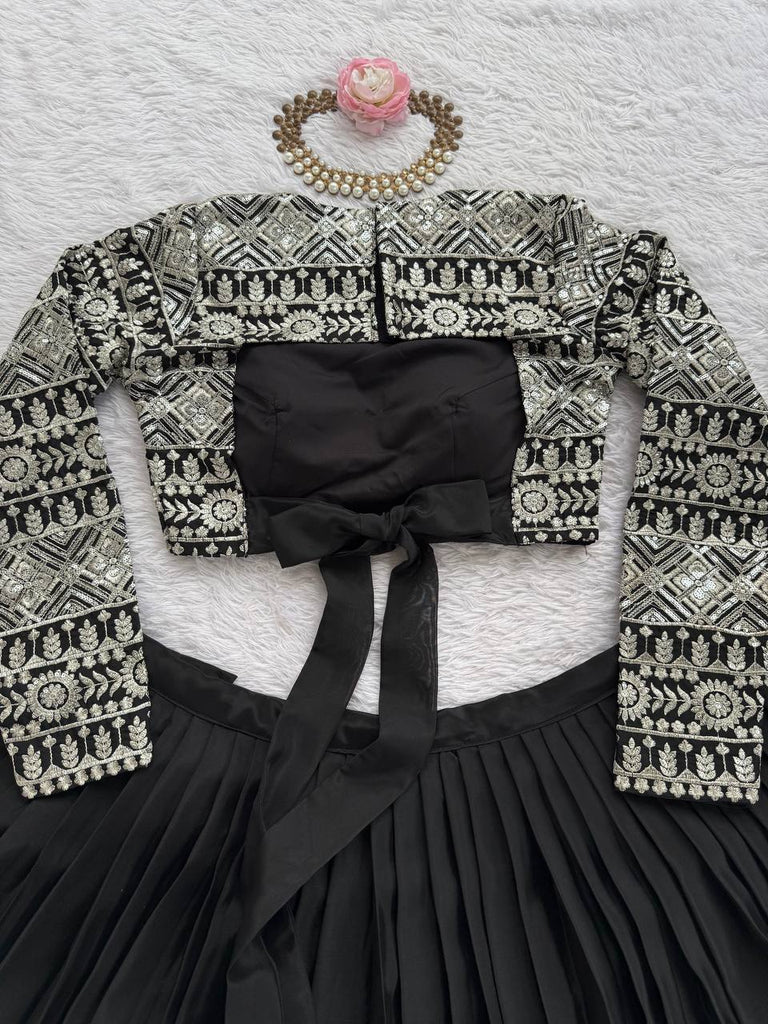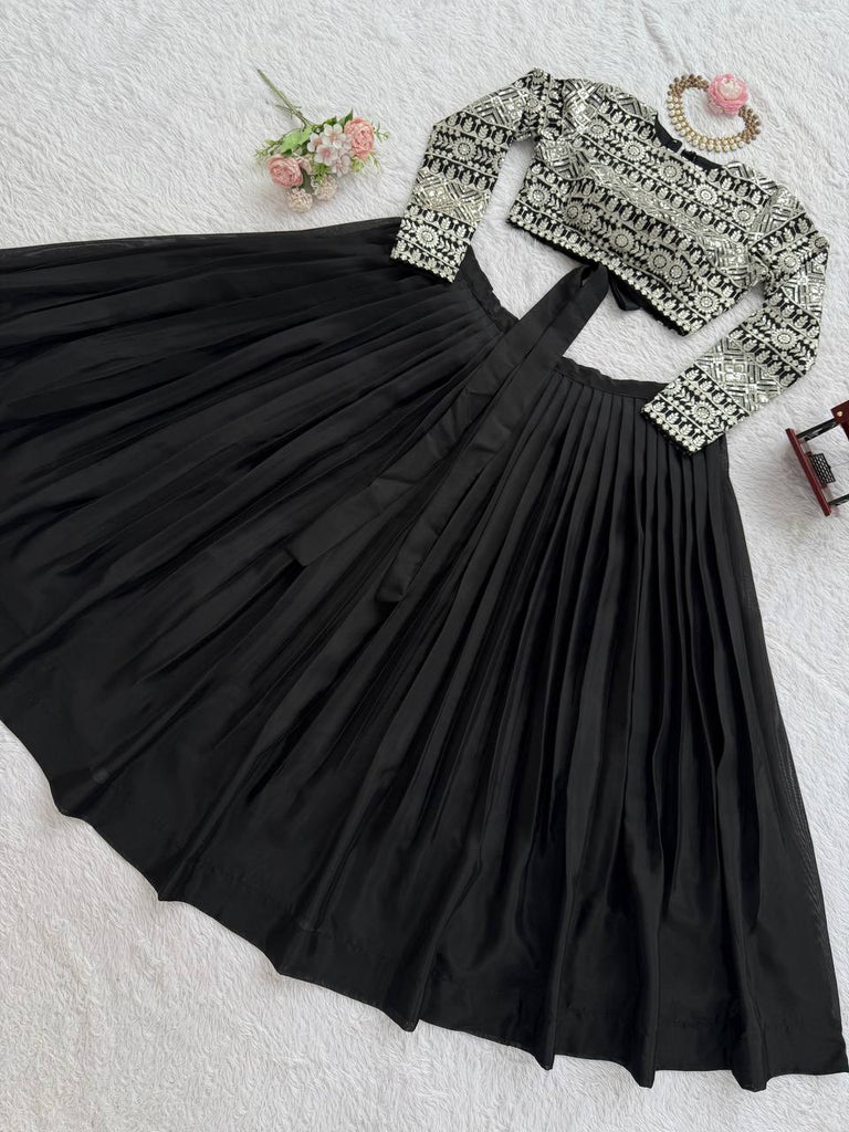 Black Elegant Tabby Organza Lehenga with Thread & Sequin Work Blouse