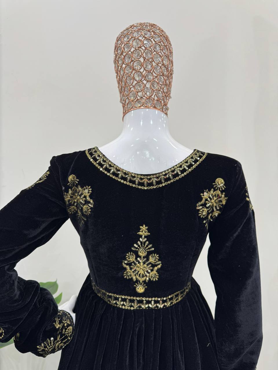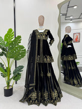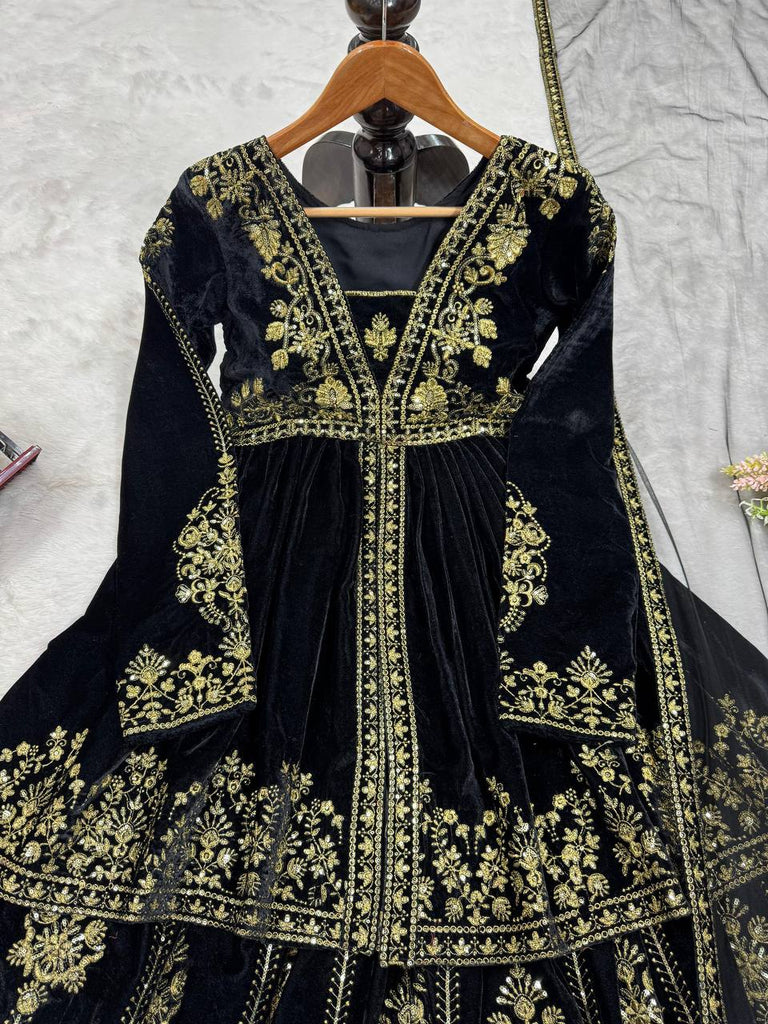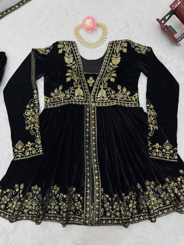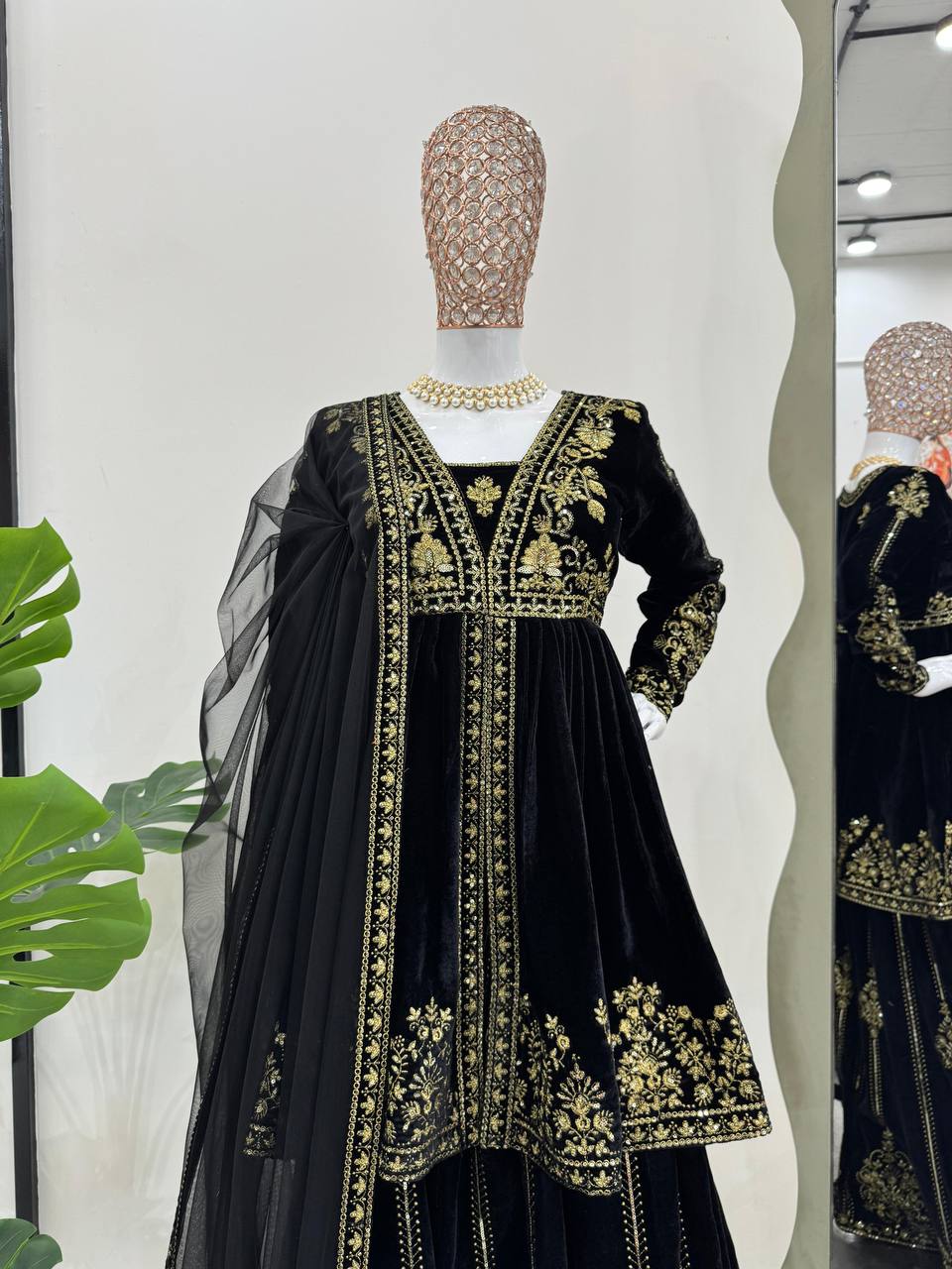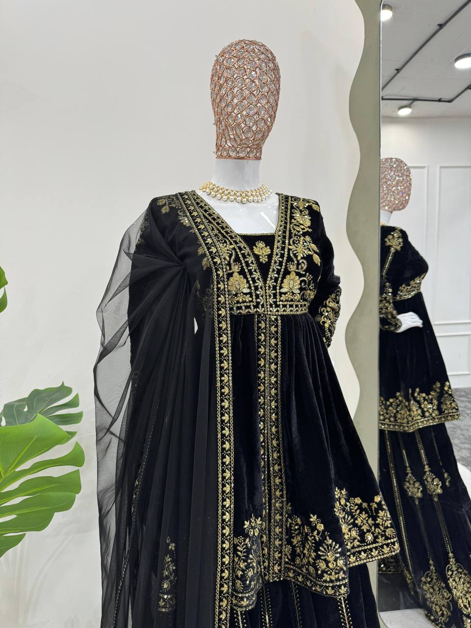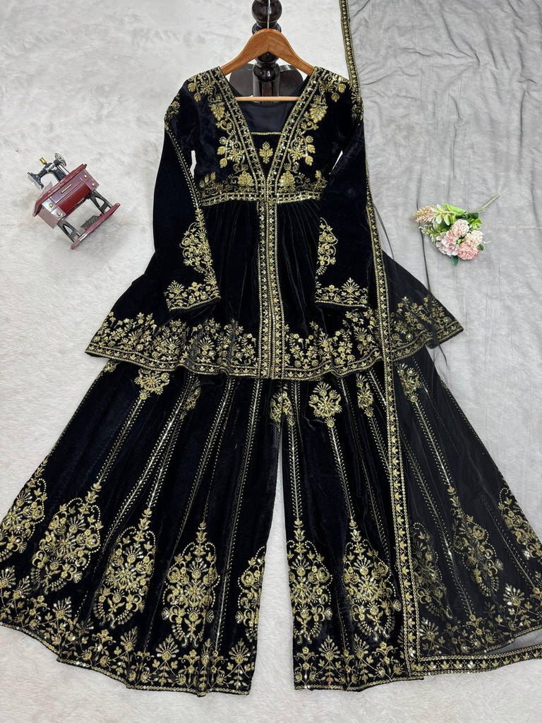 Black Elegant Velvet Ensemble – Top, Plazo & Dupatta
