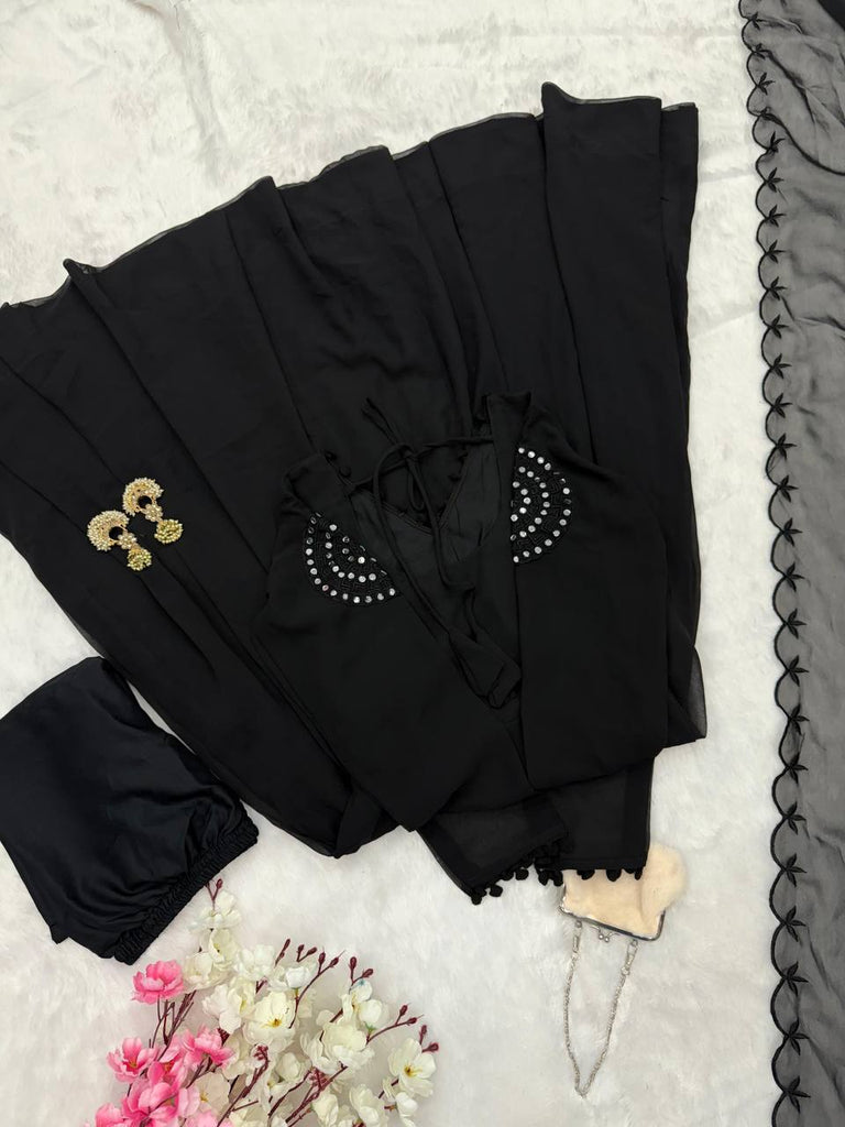 Black Exclusive Georgette Anarkali Set with Mirror Work Eid SpecialExclusive Georgette Anarkali Set with Mirror Work Eid Special
