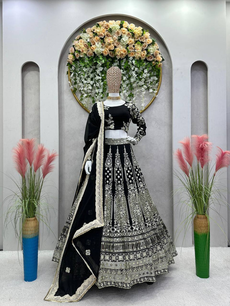 Step into elegance with this beautifully crafted lehenga set – a stunning fusion of modern shimmer and traditional grace. Perfect for weddings, festive functions, or any special celebration.
