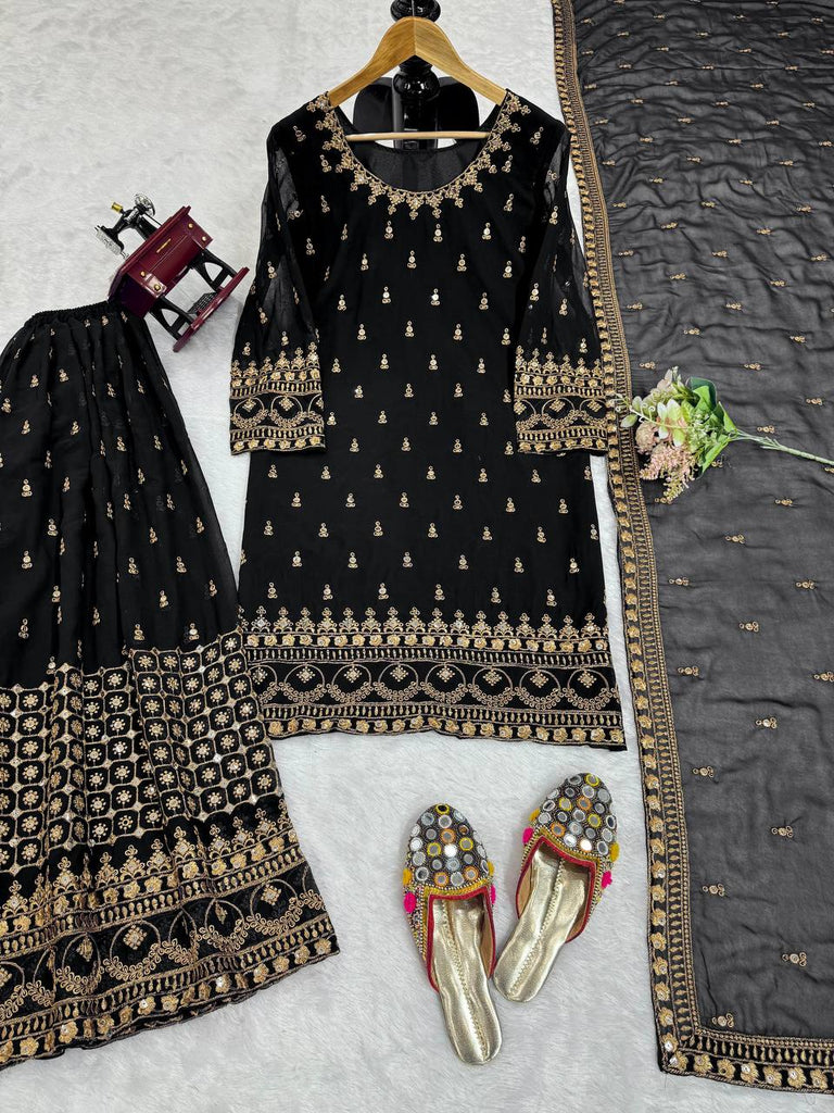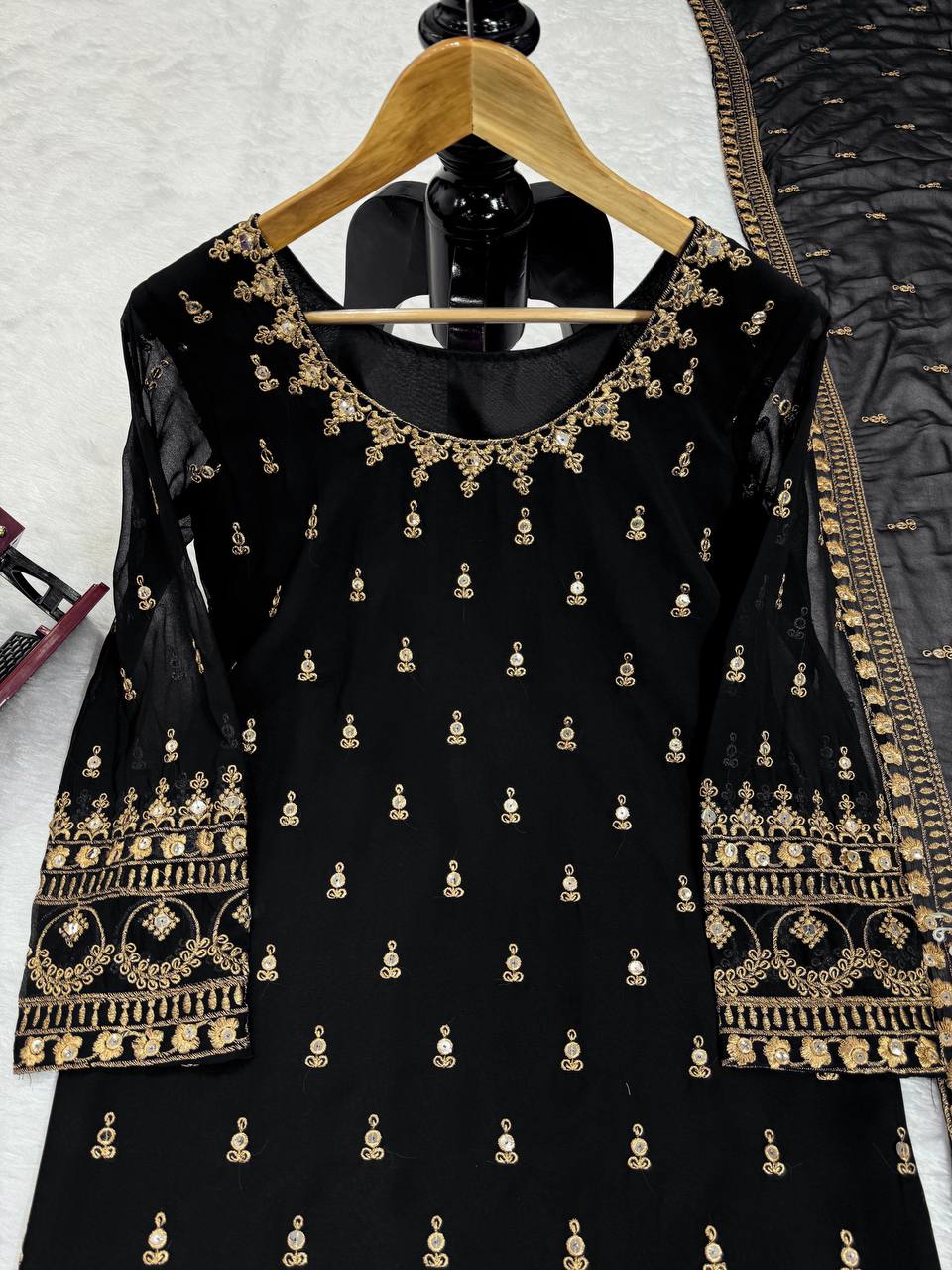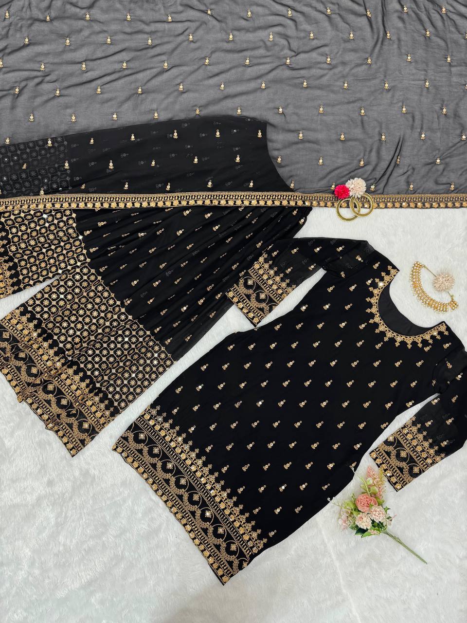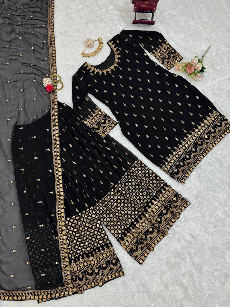 Black Glamorous Faux Georgette Plazo Set with Dupatta