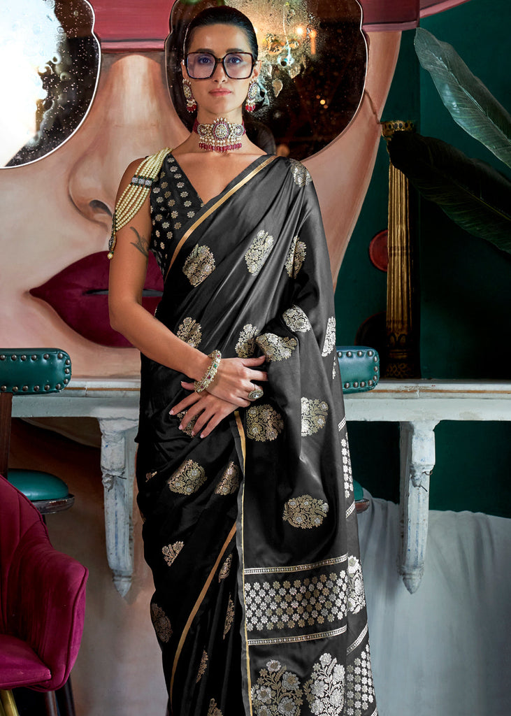 Black Glamorous Satin Silk Saree – Perfect for Cocktail & Dinner Parties