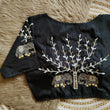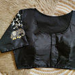 Black Handcrafted Blouse with Detailed Sleeves and Back in Haka Silk