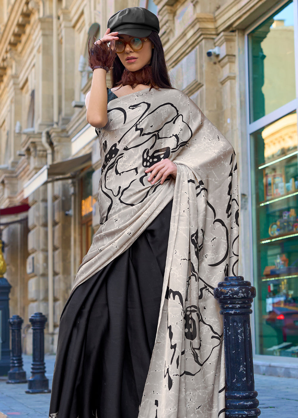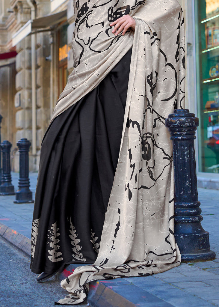 Black Luxurious Satin Crepe Saree – Elegance with a Graceful Drape