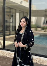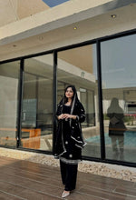 Black Premium Designer Readymade Faux Georgette Top, Plazzo & Dupatta Set – Party Wear Elegance