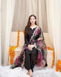 Completing the ensemble is a beautiful dupatta made of organza silk fabric with intricate prints and embroidery work, fully stitched and providing a touch of elegance and sophistication to the outfit.