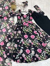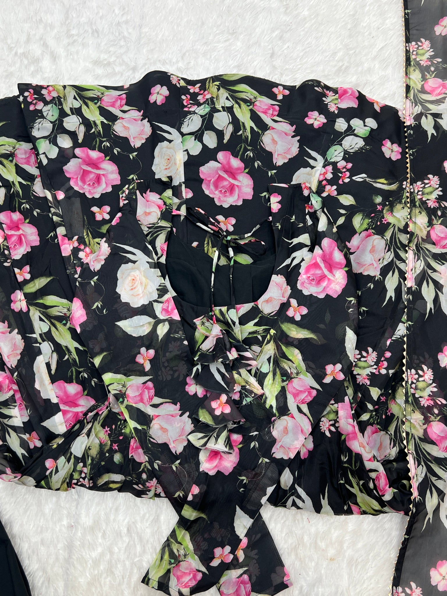 Black Vibrant Pure Organza Silk Anarkali Set with Dupatta & Pant