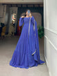 Blue Butterfly Bliss Printed Georgette Gown with Shimmering Dupatta - Ready to Wear