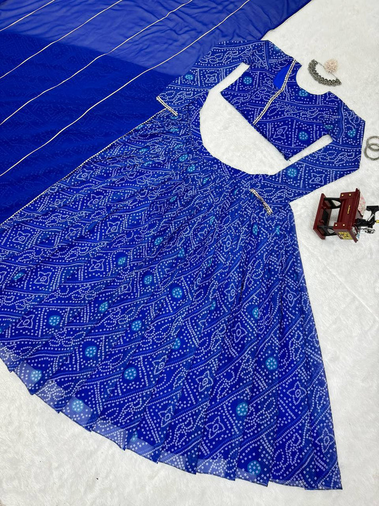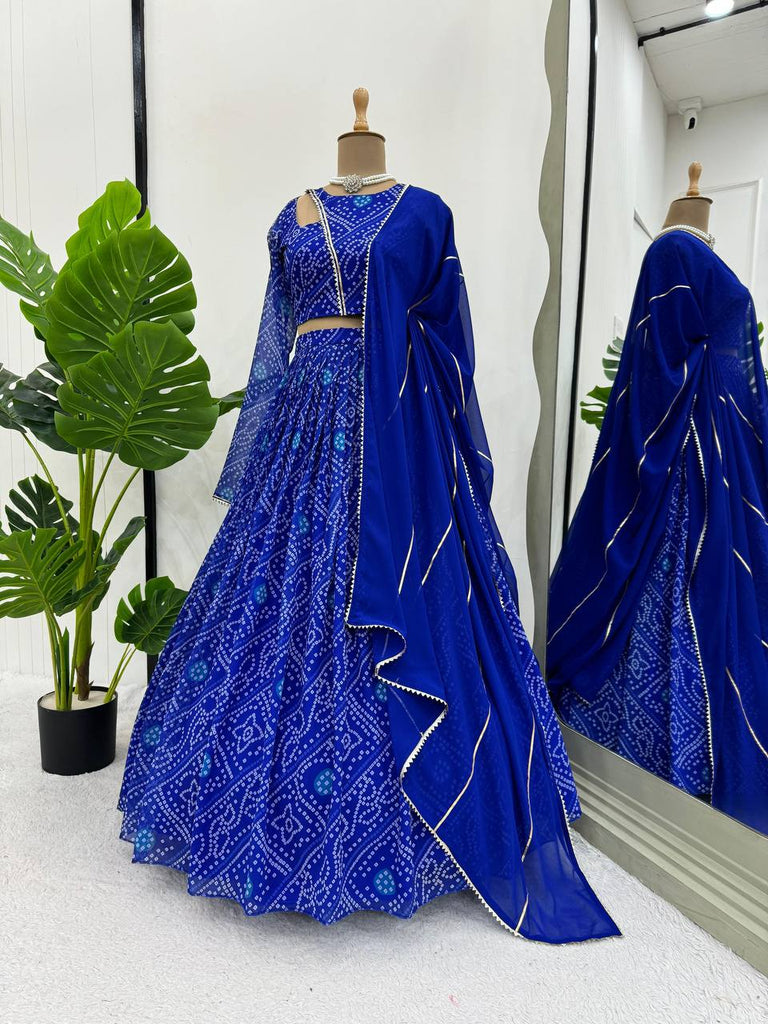 Blue Chic Faux Georgette Semi-Stitched Lehenga Set with Digital Print & Lace Border Dupatta