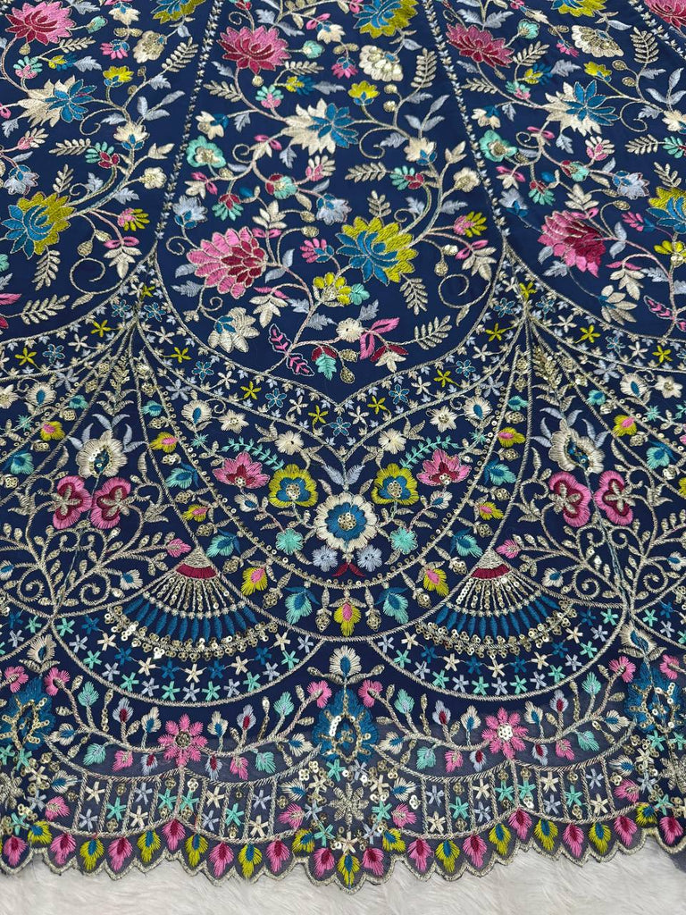 Blue Designer Faux Georgette Semi-Stitched Lehenga Choli Set with Sequin Embroidery & Fancy Latkan Work