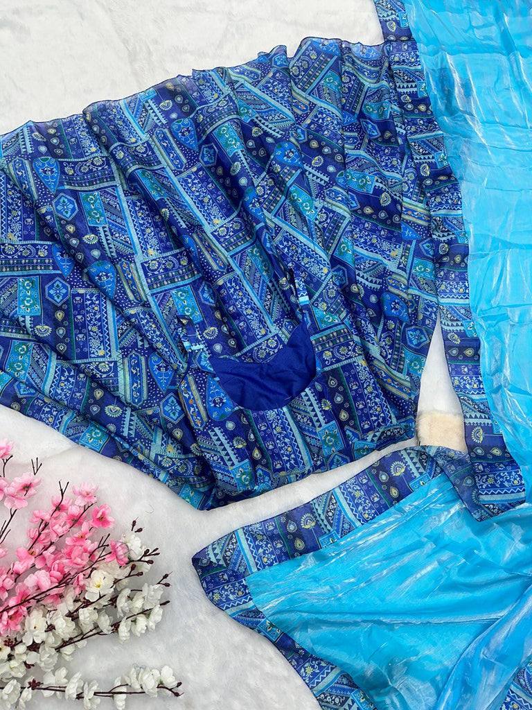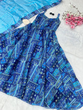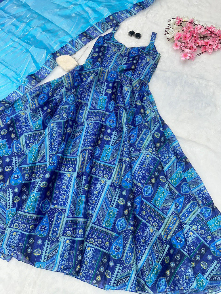 Blue Elegant Anarkali Gown with Jimmy Organza Dupatta