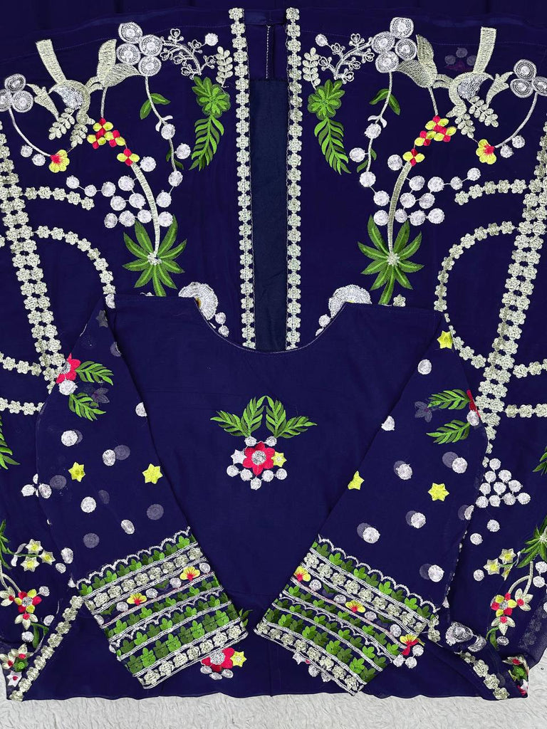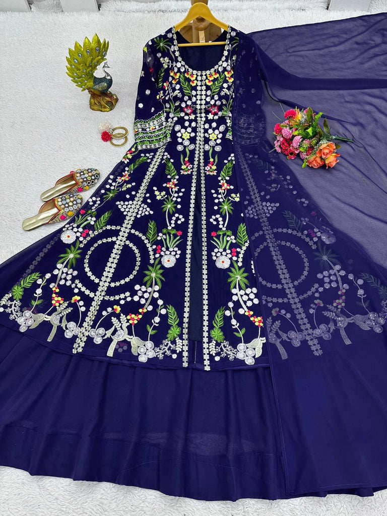 Blue Elegant Fox Georgette Lehenga Set with Full-Stitched Top & Lace Border Dupatta