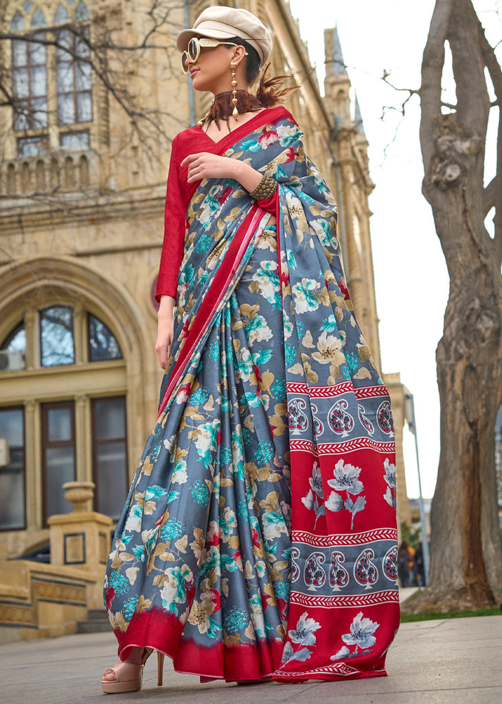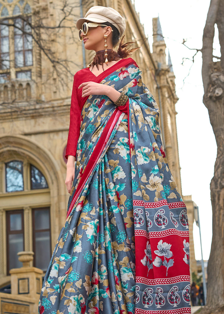 Blue Elegant Satin Crepe Saree – A Perfect Blend of Luxury & Grace
