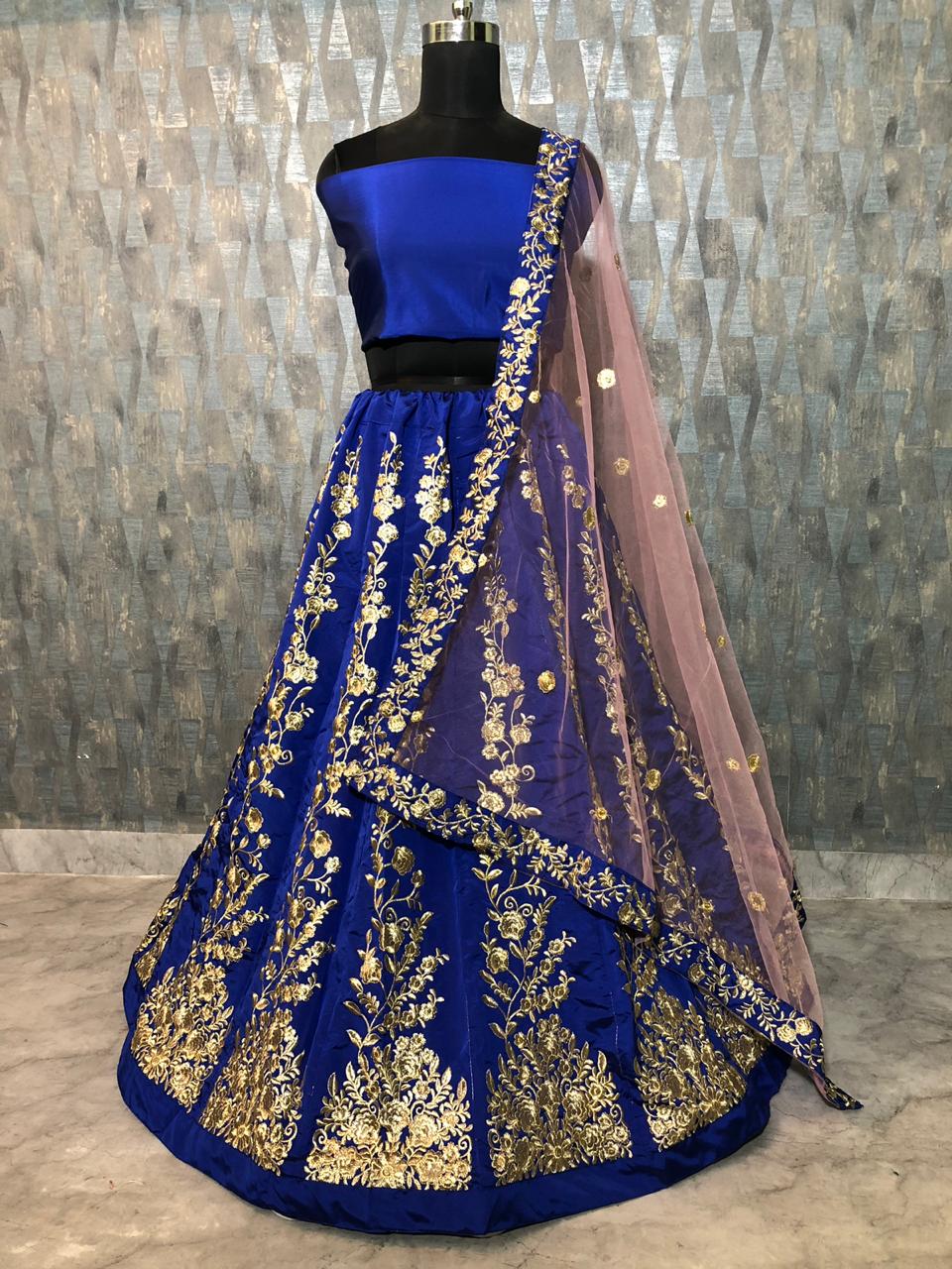 Lehenga: Made from luxurious Tapeta Silk with intricate Zari Embroidery, this semi-stitched lehenga comes with a smooth Inner Silk lining for added comfort.