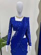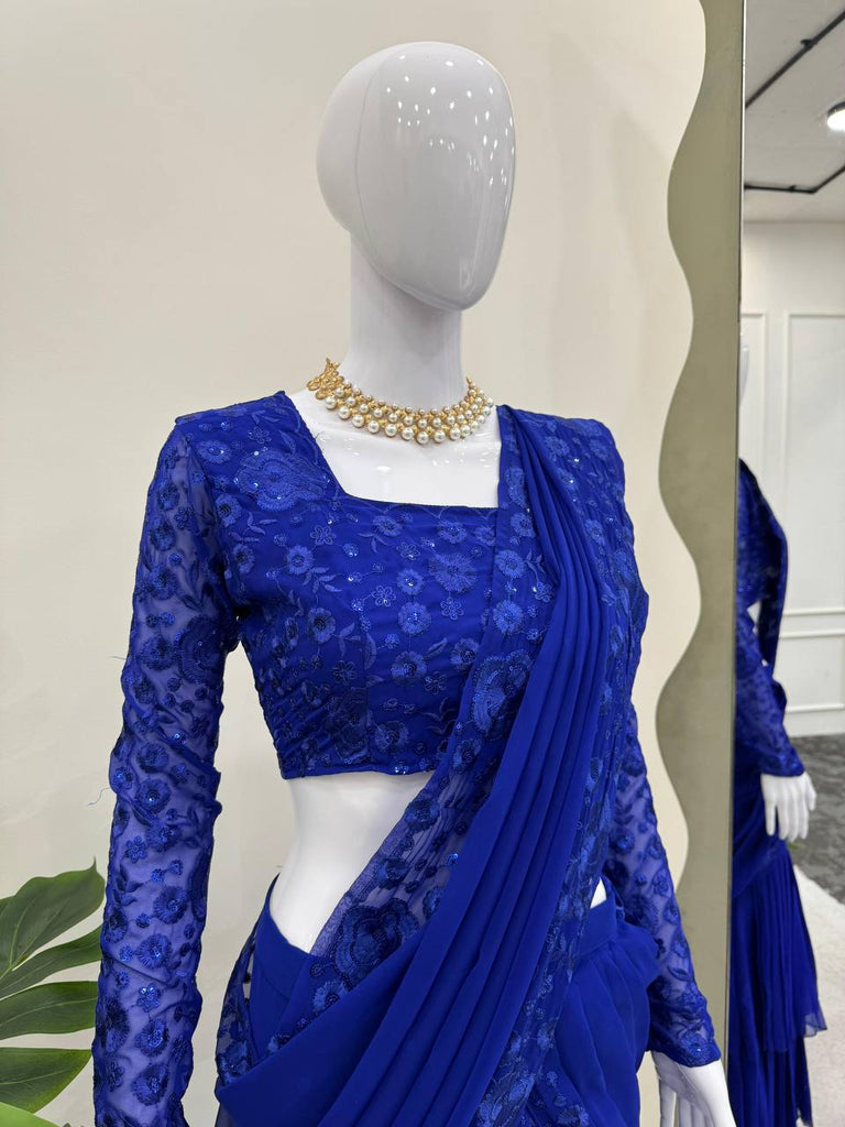 Blue Ready-to-Wear Ruffle Style Lehenga Saree in Faux Georgette with Thread & Sequin Work