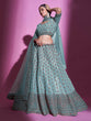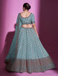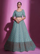 Blue Silk Blend Embroidered Semi Stitched Lehenga With Unstitched Blouse