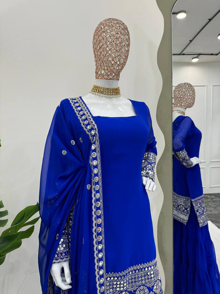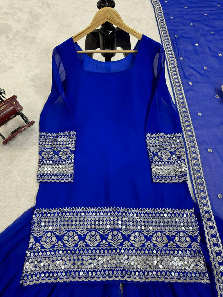 Blue Stunning Faux Georgette Sharara Set – A Perfect Festive Ensemble
