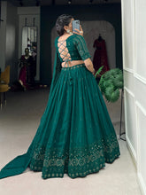 Bottel Green Radiant Elegance: Georgette Lehenga with Sequins Embroidery