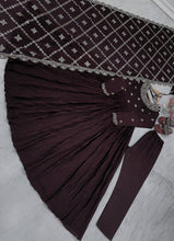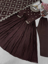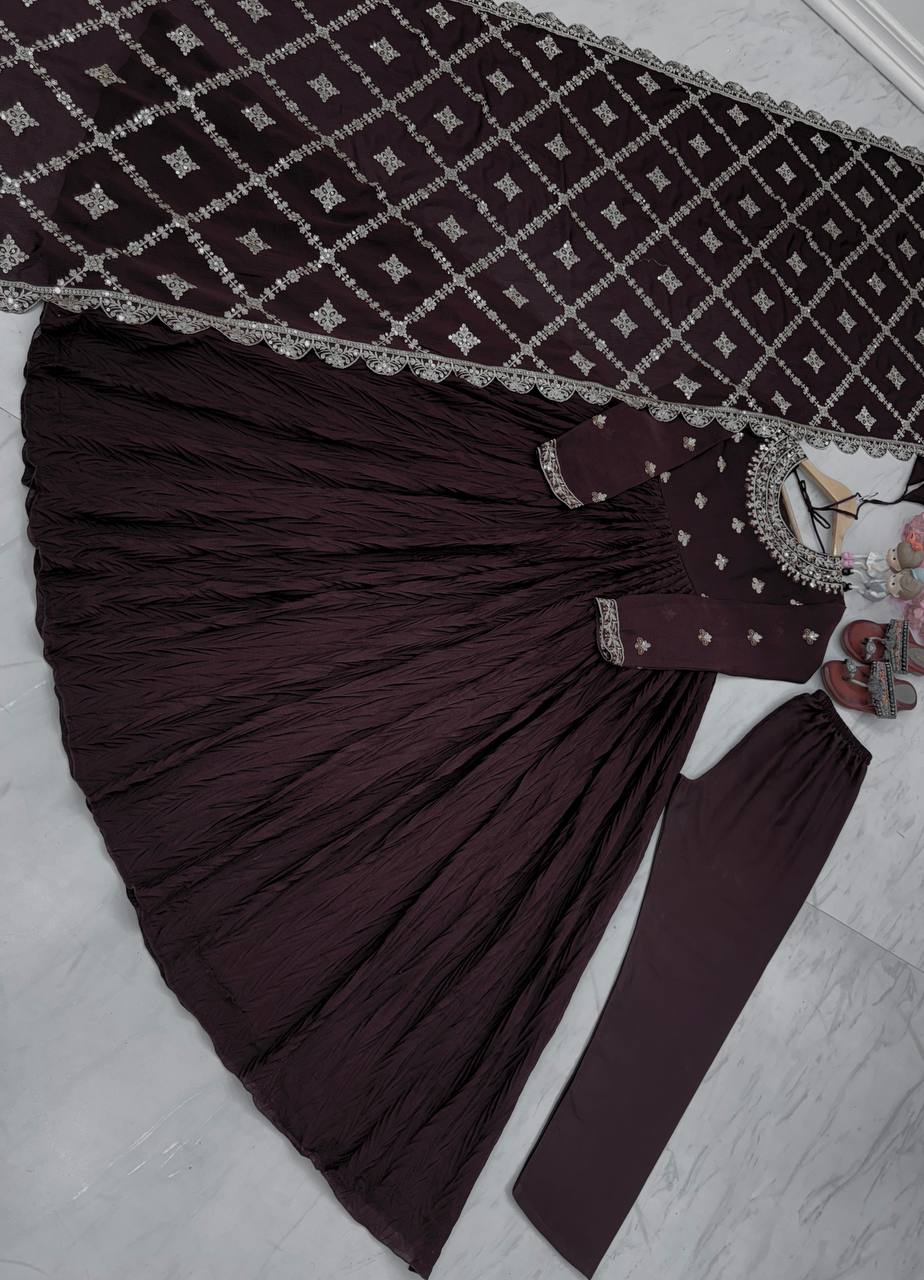 Brown Elegant Party Wear Chinon Silk Fancy Gown Set