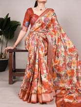 Brown Elegant Tussar Silk Floral Printed Saree with Viscose Border