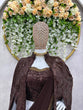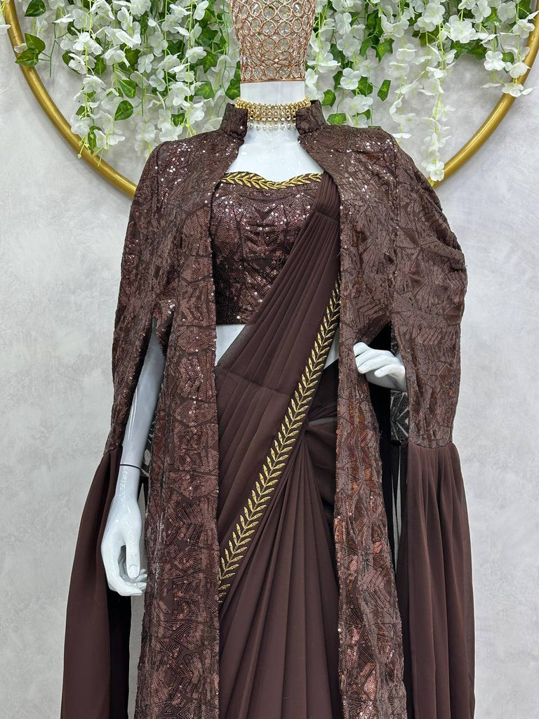 Brown Ready-to-Wear Faux Georgette Lehenga Saree Set with Embroidered Choli & Stylish Shrug