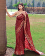The saree also comes with an elegant unique woven floral Pallu, which enhances the overall aesthetic appeal of the saree. The combination of the brown color, floral design and intricate details create a beautiful and stunning look that's perfect for any occasion.