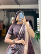 The comfortable Dola Silk fabric drapes gracefully, offering a flattering 3.40-meter flair.